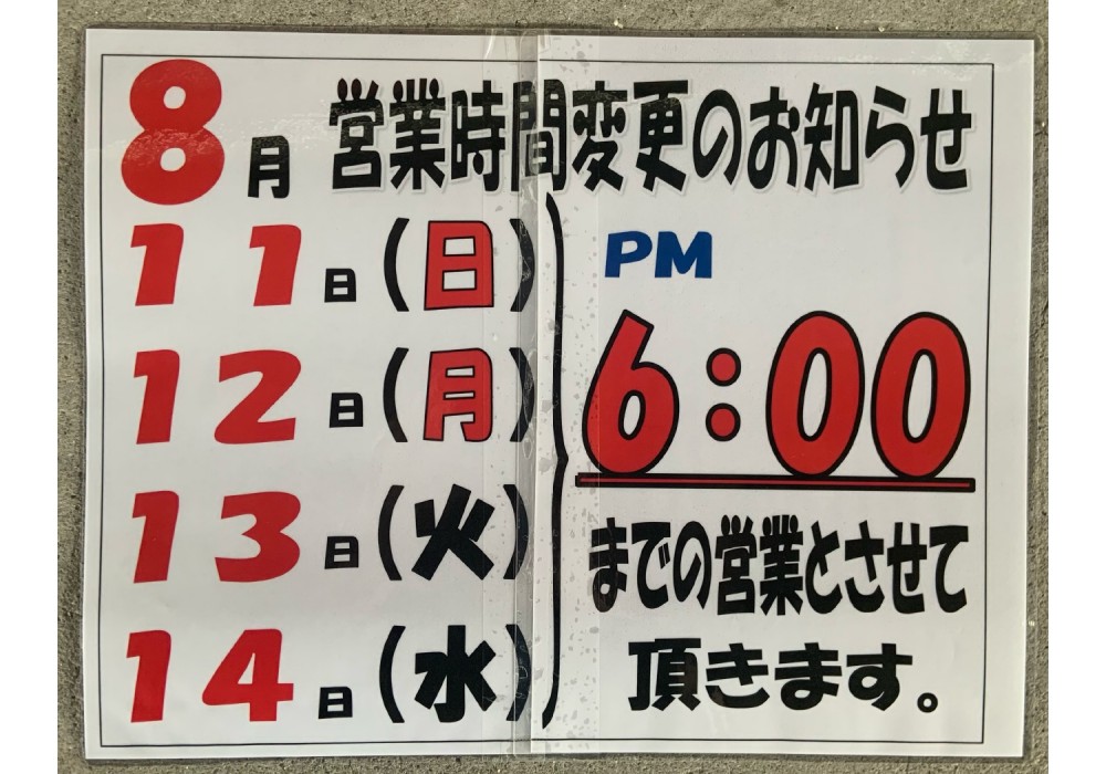 8/11( 日) 8/12(月) 8/13(火) 8/14(水)